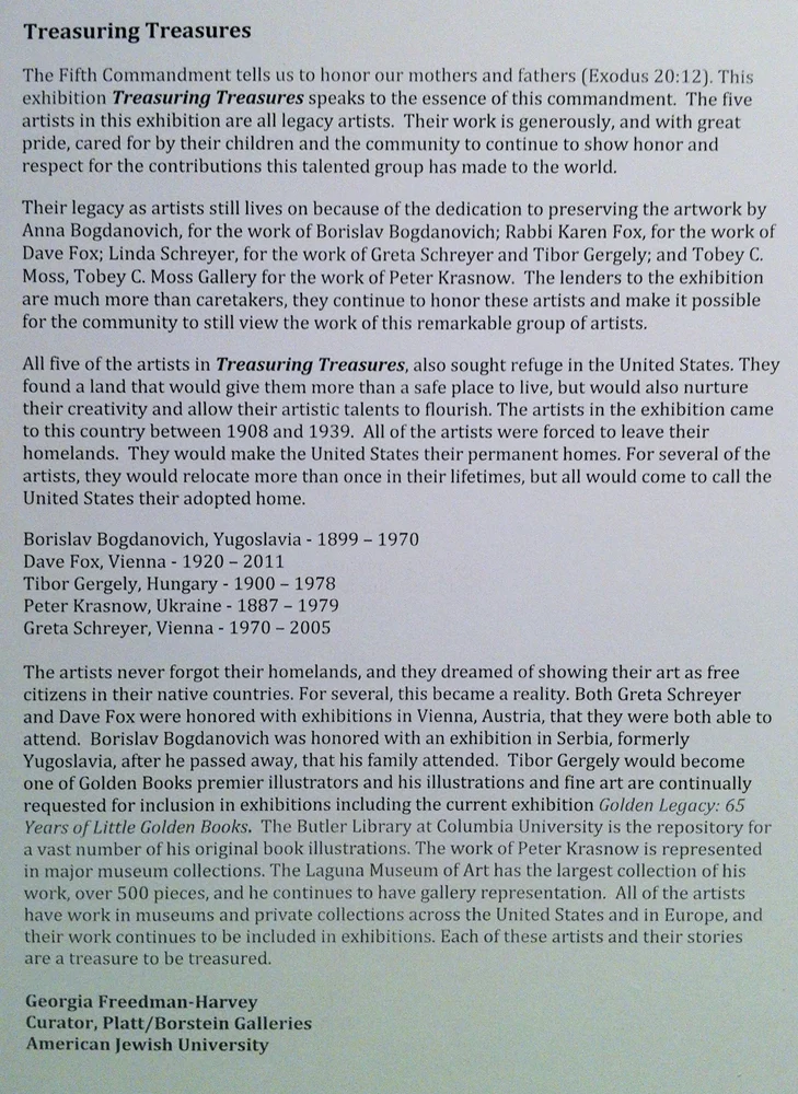 The TREASURING TREASURES Legacy Art Group Exhibit opened today at the Platt and Borstein Galleries at AJU. I visited with my brother Peter Bogdanovich, his eldest daughter Antonia, her son Maceo; and my partner Jason Klassi.
